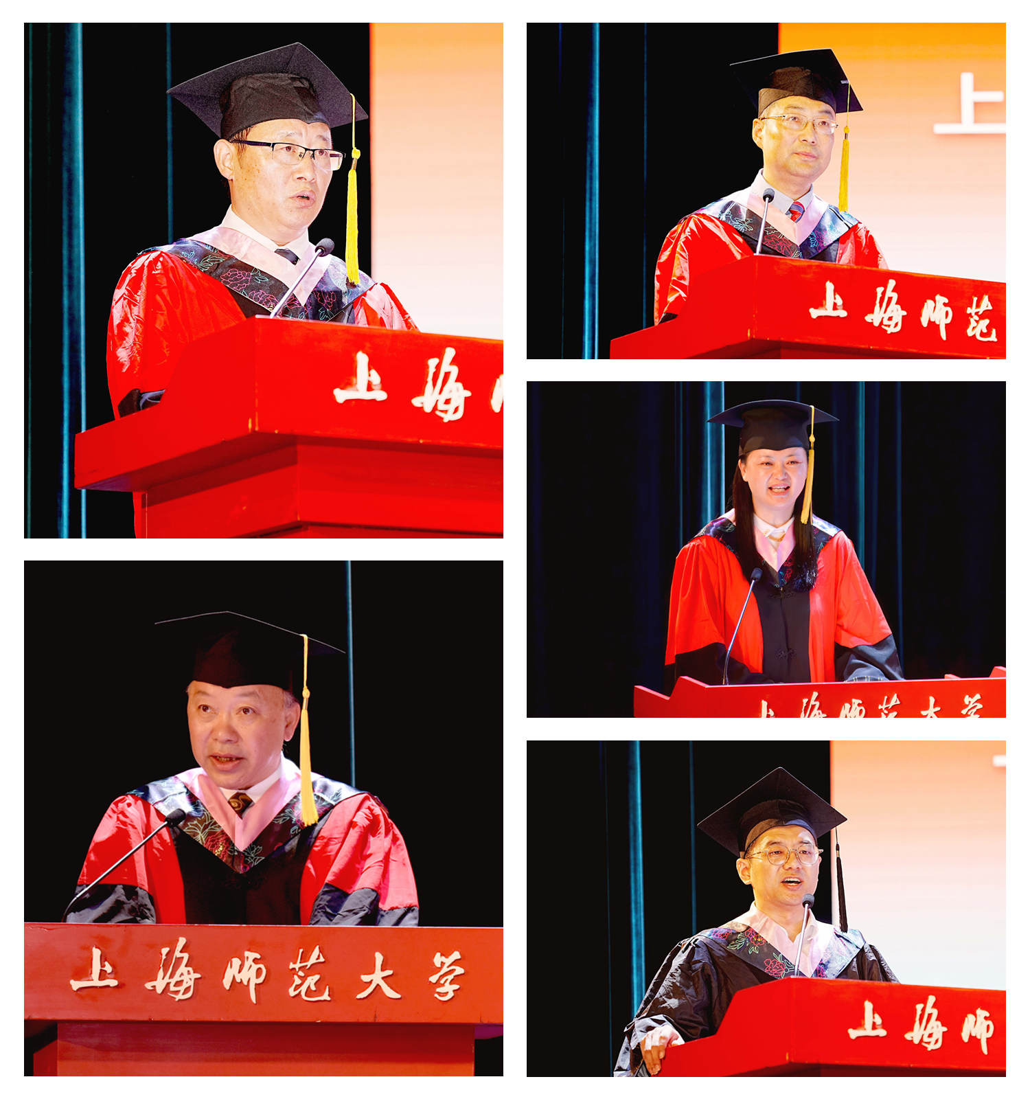 土木工程专业毕业生曾维强,荣获上海市成人高等教育“十佳学习标兵”和“优秀学员”等多项荣誉,担任上海建工五建集团既有建筑改造修缮研究所副所长,深度参与仁济医院修缮、四行仓库修缮、复旦相辉堂修缮等项目,以第一完成人申请15项专利,发表6篇论文,获17项各类科研奖。他代表毕业生发言,分享成长心路历程,感恩母校,感谢师长。他代表全体毕业生祝愿母校蒸蒸日上、璀璨辉煌,祝福老师们身体健康、桃李满天下,祝福同学们披荆斩棘、鹏程万里!外国语学院陈东岚老师代表全体教师发言,她向毕业生表达祝贺、送上祝福。她认为今天是一个特别庄重而充满喜悦的时刻、感慨万千并继往开来的时刻、懂得感恩和展望未来的时刻。她寄语同学们,人生如诗,毕业如歌;拥抱变化,超越自我;世界必定因你而不同,共同期待更美好的明天。