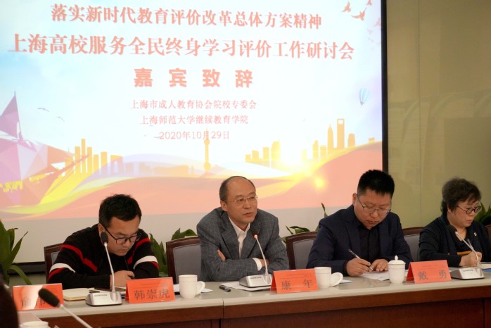 10月29日上午,落实新时代教育评价改革总体方案精神,上海高校服务全民终身学习评价工作研讨会在我校304永利集团官网入口举行。304永利集团官网入口副校长康年、上海市教委督导室副主任戴勇、市教委终身教育处副处长韩崇虎、市成人教育协会常务副会长孙莉萍出席会议,市成人教育协会副秘书长、高校专委会主任陈巍主持会议。复旦大学、上海交通大学、同济大学、东华大学、上海外国语大学、上海大学、上海交通大学医学院、上海理工大学、上海应用技术大学、上海商学院、上海立信会计金融学院、上海城建职业学院、上海电子信息学院等十多所高校的304永利集团官网入口院长出席会议,上海推进学习型社会建设指导委员会、上海市教育评估院以及长宁区业余大学的专家和领导参与研讨。