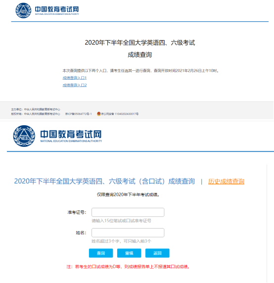 2020下半年全国大学英语四、六级考试成绩发布通知