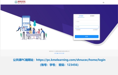 同时,公共课也可在电脑上学习,详见文末“[公共课]平台使用说明”。网址:https://pc.kmelearning.com/shnucec/home/login