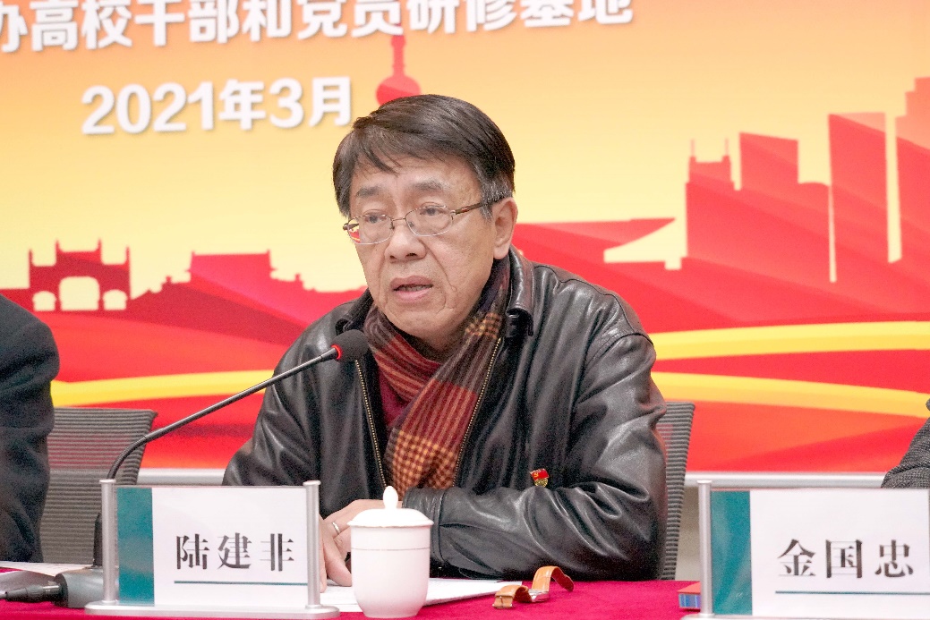 陆建非介绍了上海民办高校干部和党员研修基地以及民办高校党总支和党支部书记(委员)研修班情况。在市教卫工作党委、教委和民办高校党工委领导下,民办高校干部和党员研修基地立足天华,辐射上海所有民办高校,组建100多人的市委党校资深党建理论专家、民办高校党委书记、教卫系统优秀党务干部等组成的专家讲师团。三年来,研修基地开展“不忘初心、牢记使命”主题教育和“四史”学习教育,举办多种类型的民办高校党务干部研修班和学习班,先后有341名干部、1375名党员、800名发展对象和2108名入党积极分子参加各类学习培训,三场大型党建专题讲座有2917名党员共同学习,已经成为上海民办高校党建工作领域“思想的阵地、素养的园地、交流的天地”。