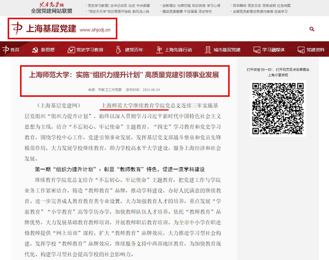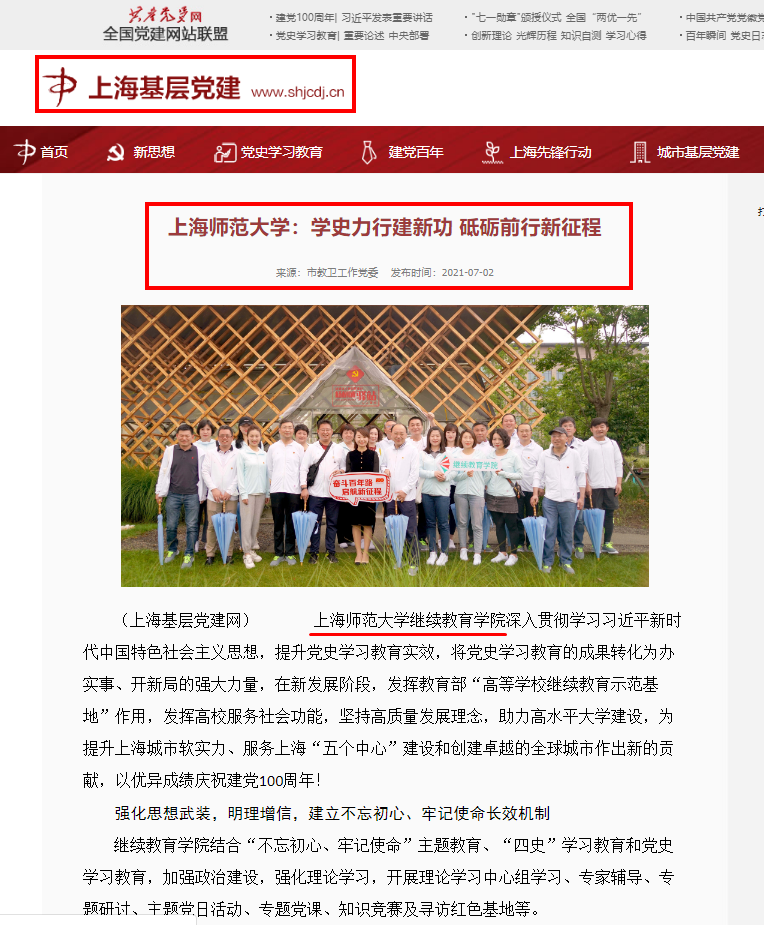 上海基层党建网、上海教育新闻网和东方网等媒体在建党百年之际,多次进行专题报道。
