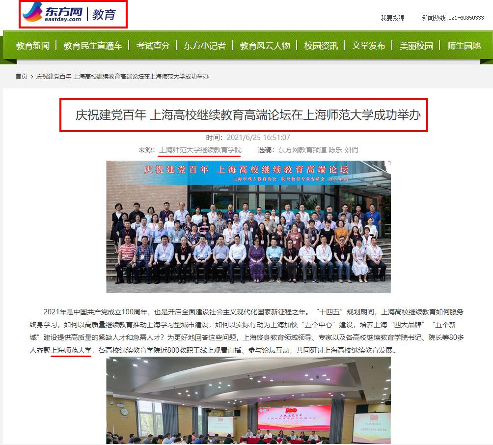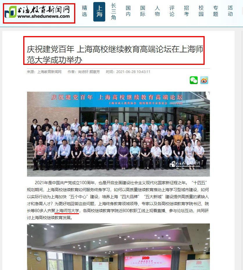 标题:庆祝建党百年上海高校继续教育高端论坛在304永利集团官网入口成功举办