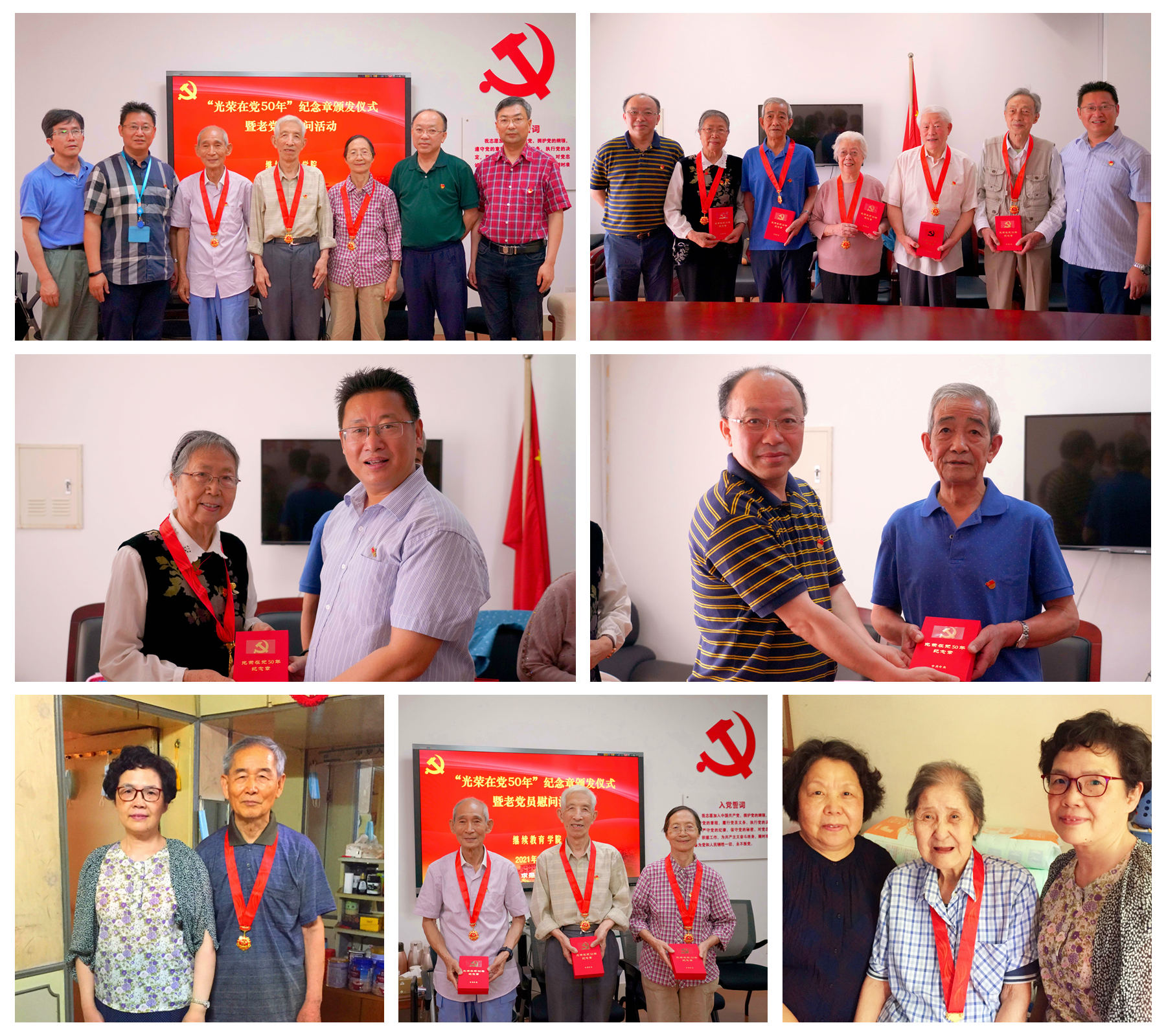 6月28日和30日,304永利集团官网入口举行“光荣在党50年”纪念章颁发仪式。学院为光荣在党50年的11名老党员颁发纪念章,向伟大的中国共产党成立100周年深情礼赞,向为党和国家的教育事业、为学校和学院发展做出重要贡献的老党员诚挚致敬。