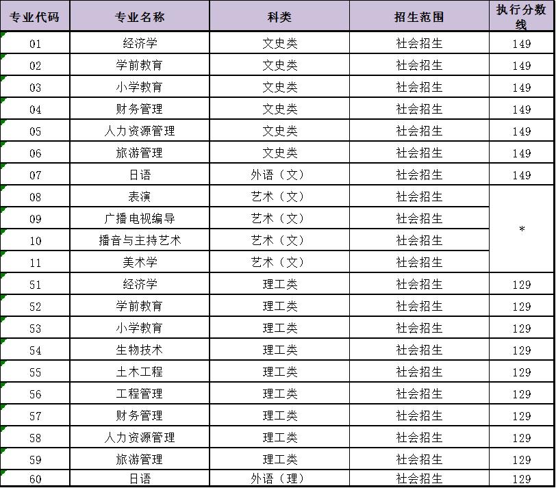 *高起本艺术类专业分数线参照《2021年上海市成人高校招生最低录取控制分数线》执行。