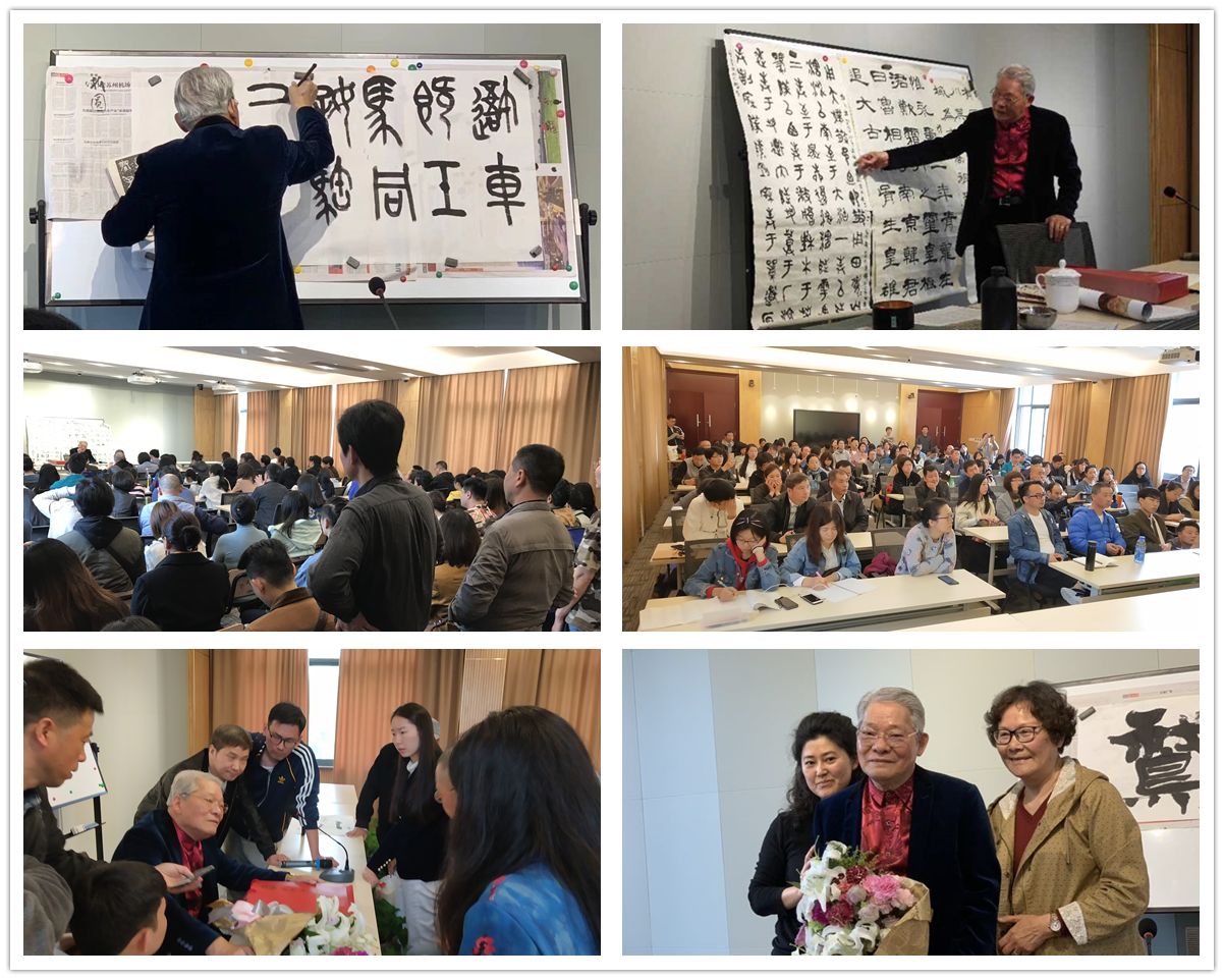 在同学们热烈的掌声和尊崇的眼神里,林先生开始了精彩的讲演,他结合自身七十多年学习从艺的艰辛历程,勉励后辈学艺道路上唯有坚持才是真理。在随后的技法环节,他博古论今,引经据典,理论结合实践,不时地作技法用笔的方法示范和指导,领会其书写要领的同学们禁不住点头称道,许多同学拿着手机拍下每一个步骤,不舍得放弃任何细节,有些同学低头记录林老师讲的每一句要领。专注认真的学习态度让人感动。最后的问答环节,现场提问激烈,争先恐后,师生互动,如切如磋,渐入佳境。两个多小时的讲座在热烈的掌声中结束,同学们意犹未尽,期待将来能有更多这样的讲座安排。