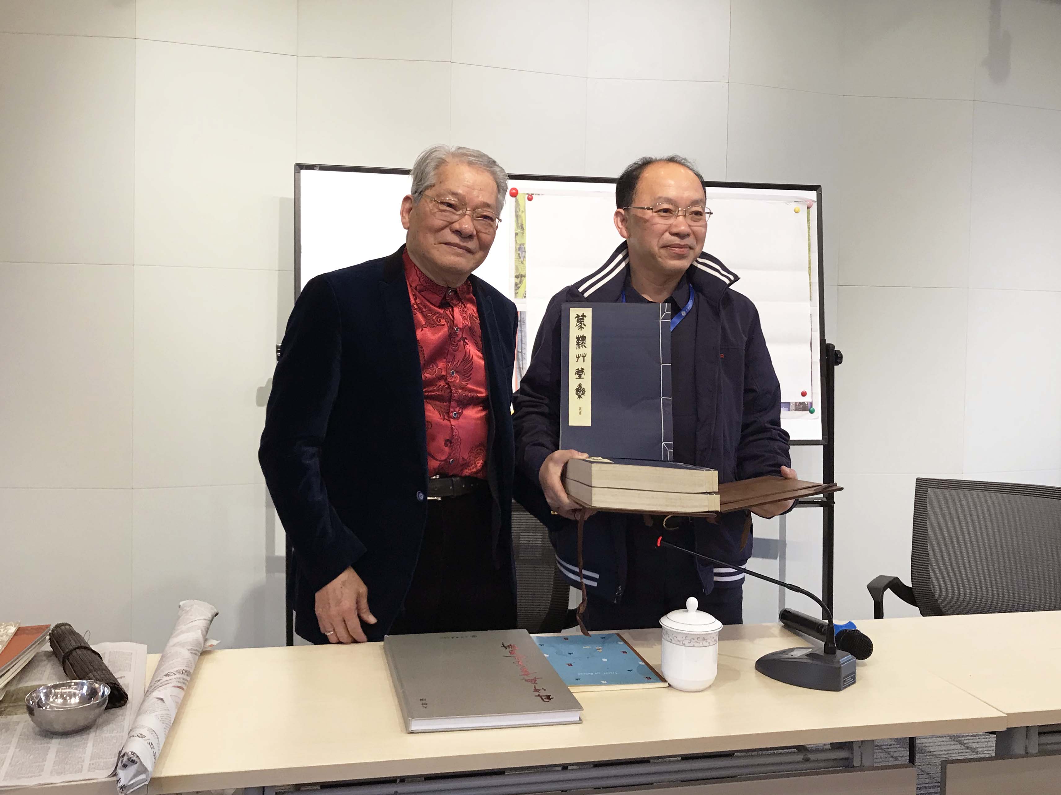 4月14日上午,学院201大教室济济一堂,气氛热烈,很多来晚没座位的同学宁愿站立走道,甚至席地而坐。原来是著名书法艺术家林仲兴老师来为美术学(中国书画)专业的学生开设讲座,授业传道。讲座由郑琪群老师主持,院长俞伟东出席并讲话,俞院长向同学们介绍了林先生的基本情况、主要成就及讲座的主题,他深情地说:“林老先生毕生致力于书海砚田,孜孜不倦地叩问书学经典,开创了独特的艺术道路,林老先生以80高龄之身亲自来院开坛授课,令晚辈学人感佩之至。”系列大师讲座是“十分难得的接受传承的机会”,要求同学们“仔细聆听,认真记录,深刻领会,争取学有所得,学有所悟,学有长进。”林先生还向学院赠送了自己的作品集。