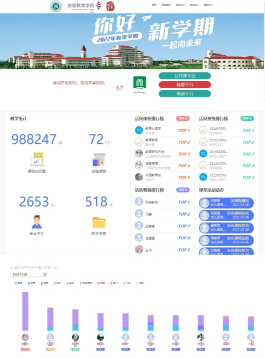 在线教学的顺利进行得到了广大师生的大力支持,后台数据显示学生学习热情高涨,有的学生甚至深夜都在认真学习课程。线上教学期间,学历部同事居家办公,每日通过小程序上下班打卡,聚焦师生关注点,以“每日短会”形式及时处理教学和平台上的相关问题,教学工作总体取得了较好效果。随着此项工作的平稳实施,学历部将通过“问卷调查”等多种形式对在线教学进行数据采集,为下一步推进高质量的在线教育积累智慧和经验。使命上心,责任在肩,学历继续教育牢记立德树人根本任务,以更加积极乐观的心态、更加坚定持久的信心、更加稳健扎实的行动,高水平高质量地完成抗“疫”期间的教学任务。学历继续教育师生将用自觉行动交上合格的答卷。
