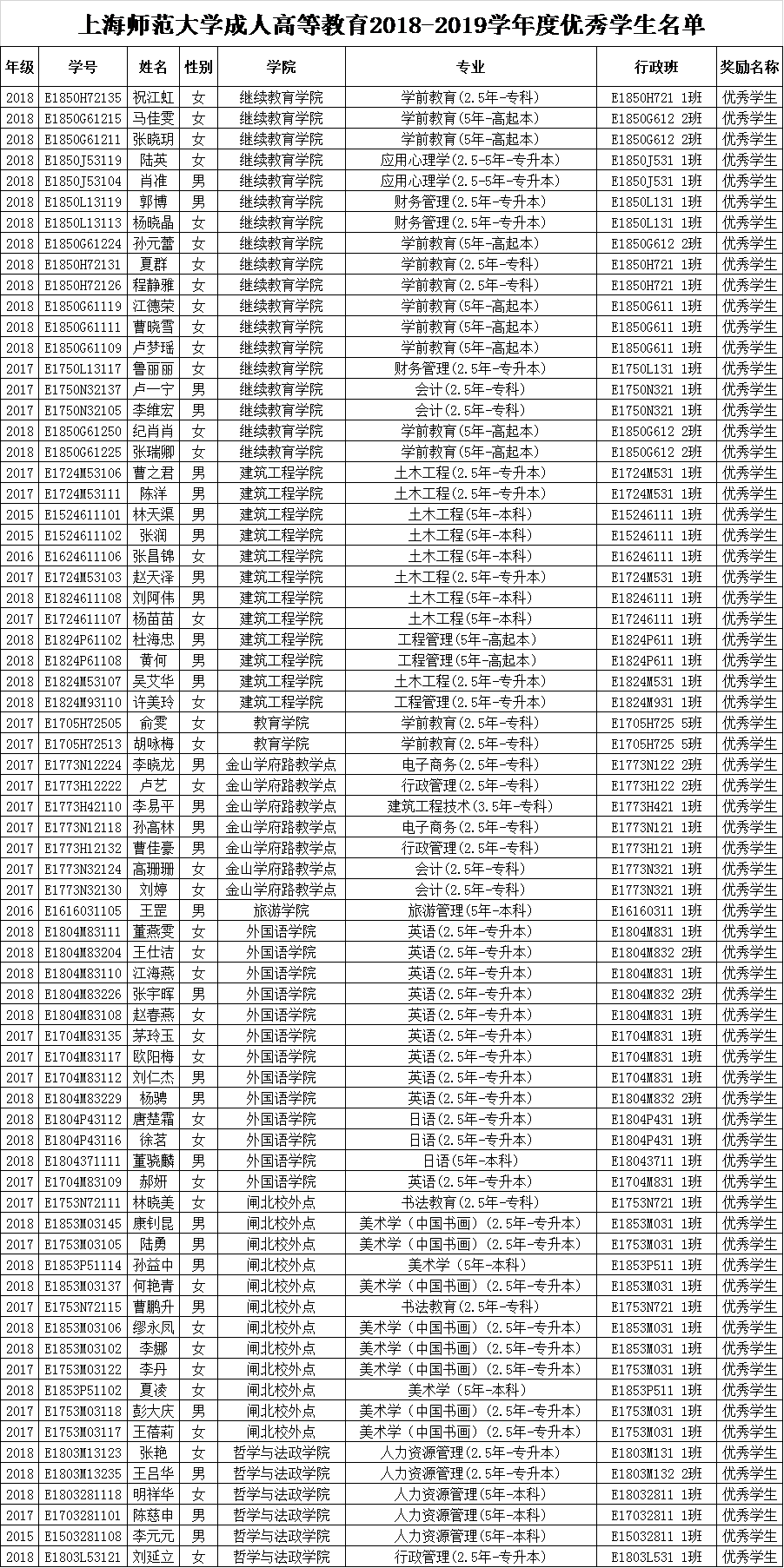 附:304永利集团官网入口成人高等教育2018-2019学年度优秀学生名单