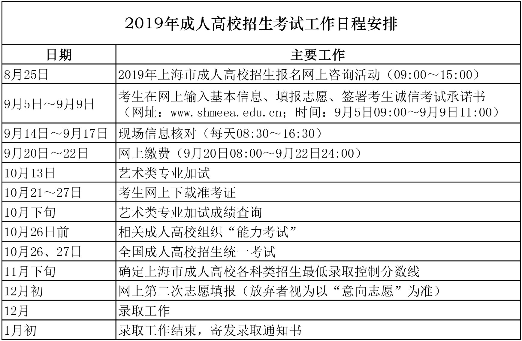 根据《上海市教育考试院关于印发〈2019年上海市成人高校考试招生工作规定〉的通知》(沪教考院社考【2019】25号)文件内容,今年成人高招工作安排如下: