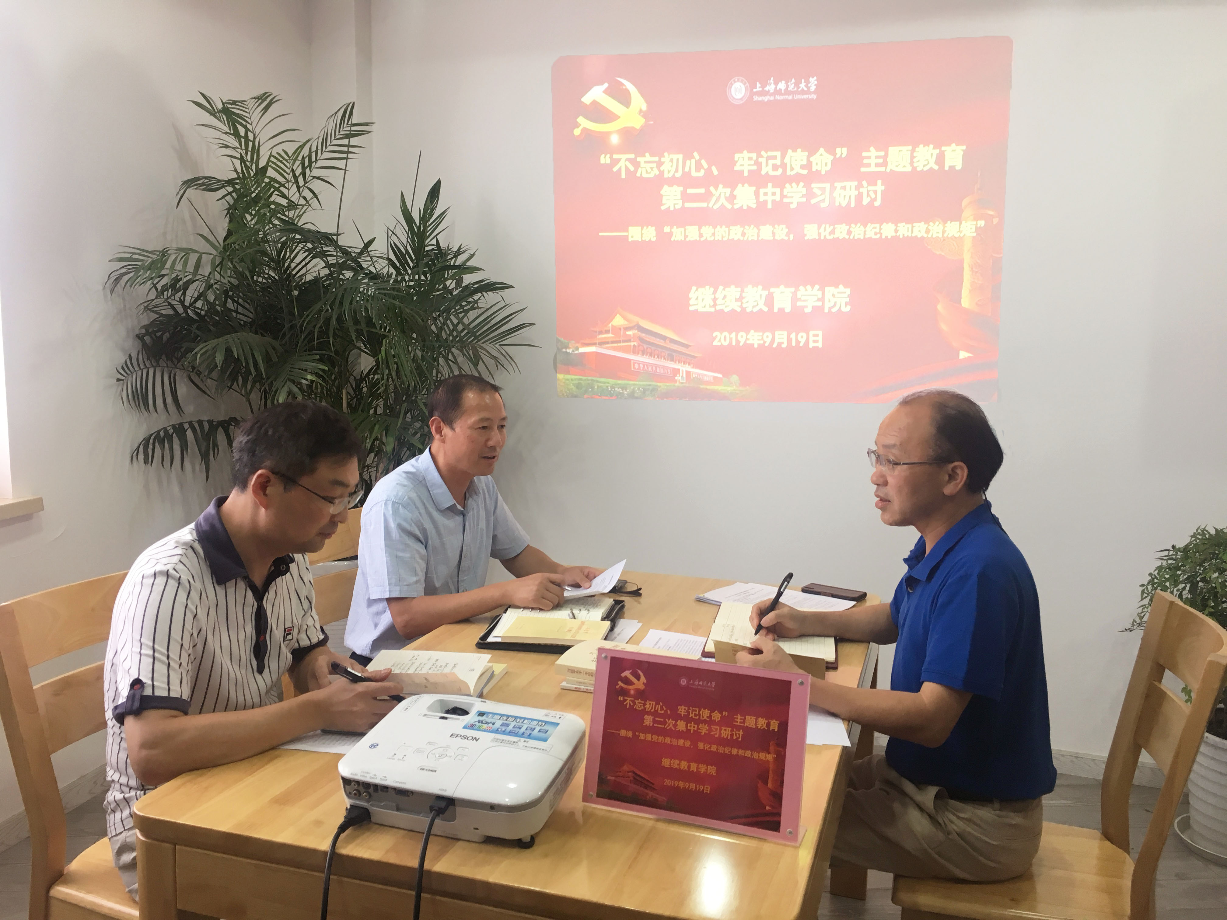 9月19日下午,304永利集团官网入口举行“不忘初心、牢记使命”主题教育第二次集中学习研讨,专题学习“加强党的政治建设,严肃党的政治纪律和政治规矩”。学院领导班子成员全体参加,副院长宋石平、盛爱军作重点发言,院长俞伟东作总结发言。