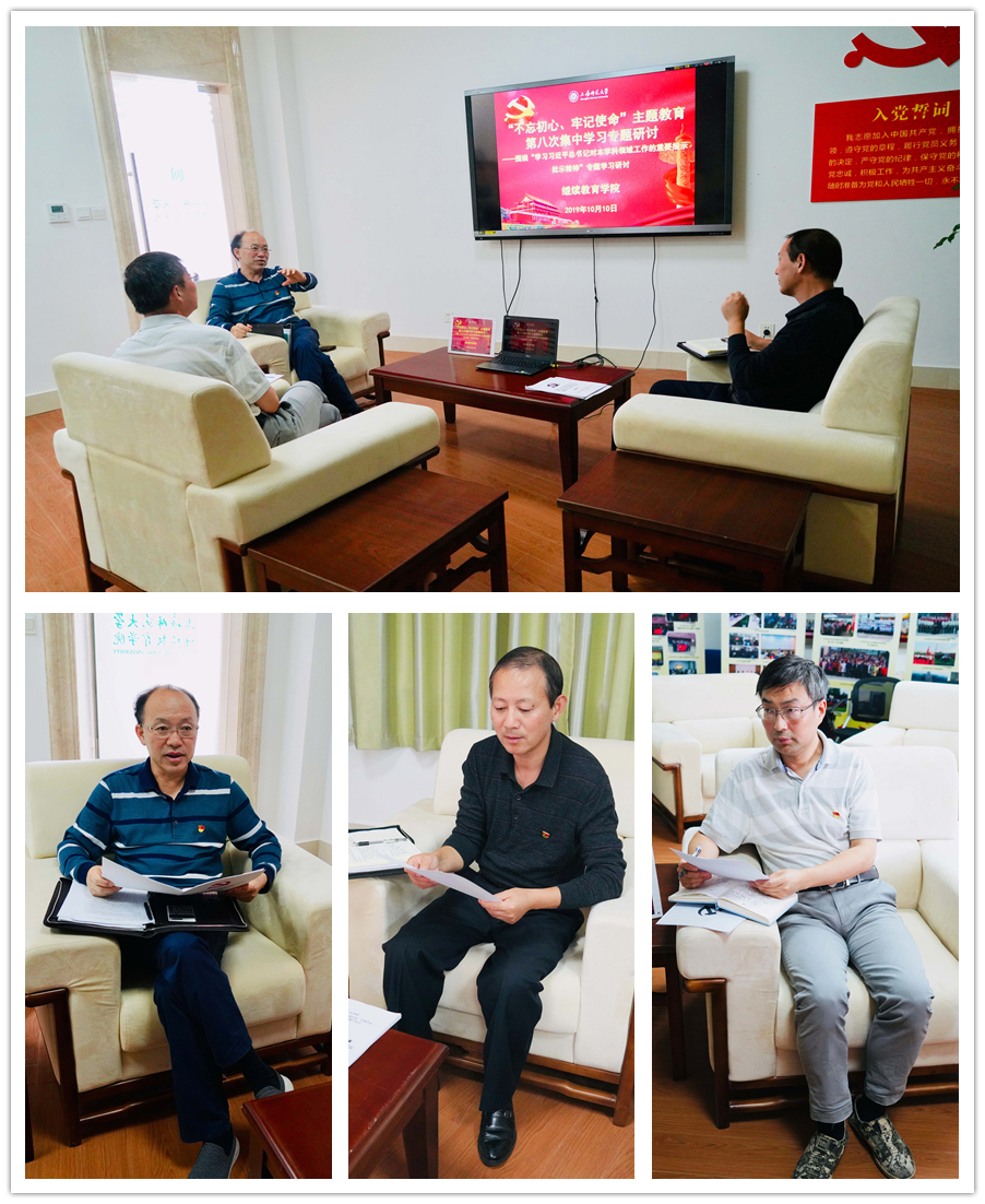 10月10日上午,304永利集团官网入口在学院1号楼105室举行“不忘初心、牢记使命”主题教育第八次集中学习研讨,学习习近平总书记对本学科领域工作的重要指示批示精神,院长俞伟东、副院长宋石平作重点发言。 俞伟东同志强调,党的十八大以来,习近平同志为核心的党中央高度重视教育事业在坚持和发展中国特色社会主义战略全局中的地位和作用,把教育摆在优先发展战略位置,全面加强党对教育工作的领导。办人民满意的教育,首先要加强党对教育工作的全面领导。坚定不移维护党中央权威和集中统一领导,以习近平新时代中国特色社会主义思想为指导,准确把握教育事业发展面临的新形势新任务,要求教育工作者在政治立场、政治方向、政治原则、政治道路上同党中央保持高度一致。培养德智体美劳全面发展社会主义建设者和接班人,归根到底,就是要坚持落实立德树人的根本任务,这是教育事业发展必须始终牢牢抓住的灵魂。把培养社会主义建设者和接班人作为根本任务,培养一代又一代拥护中国共产党领导和我国社会主义制度、立志为中国特色社会主义奋斗终身的有用人才,加快中国从教育大国向教育强国迈进的步伐,为实现中华民族伟大复兴的中国梦奠定坚强动力和扎实基础。 宋石平同志认真学习习近平在教育领域的重要指示和批示精神,交流了习近平总书记在全国教育大会和全国高校思想政治工作会议讲话精神三点学习心得。一是要坚持党对我国教育事业的绝对领导。教育是国之大计、党之大计,要坚持党对教育事业的全面领导,全面贯彻党的教育方针,坚持马克思主义指导地位,坚持中国特色社会主义教育发展道路,坚持社会主义办学方向。二是坚持思想政治工作贯穿育人全过程。高校的思想政治工作关系到高校培养什么样的人,如何培养人以及为谁培养人这个根本性问题,要认真做好、做实、做出成效。三是高校教师是做好立德树人的关键所在。教育者先受教育,为人师表,要有好的师德师风,要有德育意识和德育教育能力,做人民满意的教师;要热爱自己的学生,以生为本,做先进思想文化优秀的传播者,承担起学生健康成长的指导者和引路人的责任。 自由发言阶段,盛爱军同志谈到,习近平总书记关于教育的重要论述作为习近平新时代中国特色社会主义思想的重要组成部分,其核心要义是“九个坚持”,提出教育学生要做好 “六个下功夫”,要全面学习把握习近平总书记关于教育的重要论述的科学内涵和精神实质,必须始终把“立德树人”作为根本任务,要增强教育服务创新发展能力,培养更多适应高质量发展的各类人才;要把立德树人融入思想道德教育、文化知识教育、社会实践教育各环节,贯穿学科体系、教学体系、教材体系、管理体系中,筑牢理想信念之基;要积极践行习近平总书记提出的“四有”好老师标准,守好教育报国的初心,担起铸魂育人的使命,通过铸师魂、严师德、强师能、传师爱,自觉把思想政治工作贯穿到教育教学全过程,更好地履行为国育才、为党育人的神圣职责,培养更多担当民族复兴大任的时代新人。