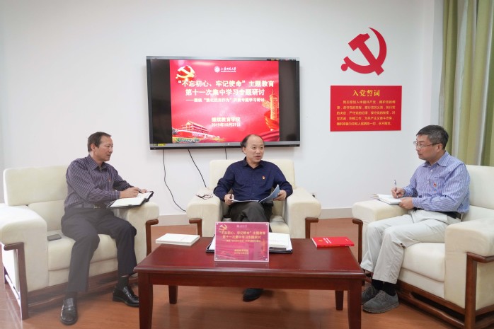 1021日上午,304永利集团官网入口在学院1号楼105室举行“不忘初心、牢记使命”主题教育第十一次集中学习研讨,围绕“强化担当作为”开展专题学习研讨,副院长宋石平、盛爱军作重点发言,院长俞伟东作总结发言。