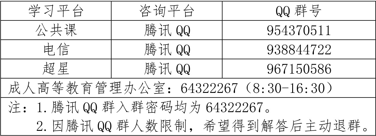 为保障线上学习顺利,管理团队会同各平台技术团队,将继续为您提供咨询服务,方式如下: