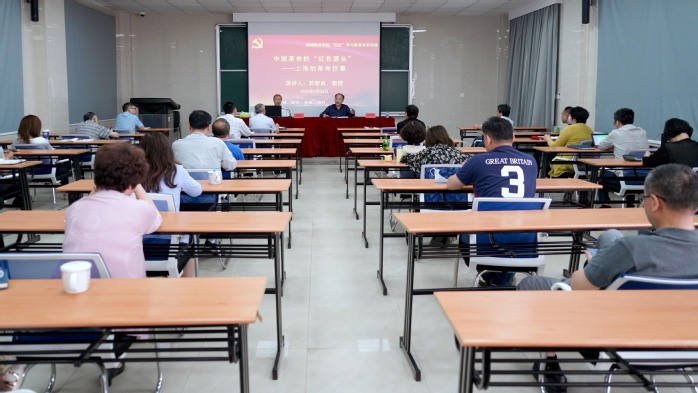 苏智良教授作题为“中国革命的‘红色源头’——上海的革命往事”的精彩报告。他从“上海城市为中共建立提供了可能”“法租界中区的特质”“人物、空间与建党活动”“寻访并保护更多的上海红色史迹”四个方面,将上海作为中国共产党“初心之地”的历史和上海红色革命纪念地的寻迹故事娓娓道来。他介绍上海发展史、现代化史、国际化史,从思想、主义、新文化三个方面探寻上海建党的文化起源。他阐述上海是中国工人阶级的发祥地,为中国共产党建党提供了文化母体。他重点介绍陈独秀、李达、陈望道等早期共产党人在老渔阳里2号、新渔阳里6号、树德里等地从事建党活动的革命往事,分享党的第一次全国代表大会的故事。他介绍《共产党宣言》第一个中文全译本在上海出版的故事,这是社会主义发展史上具有里程碑意义的事件。上海是一座有着光荣革命传统的城市,他呼吁要宣传好、利用好、传承好上海红色文脉,重温建党历史,汲取精神力量,更加深刻理解习近平总书记关于“从石库门到天安门,从兴业路到复兴路,我们党近百年来所付出的一切努力、进行的一切斗争、作出的一切牺牲,都是为了人民幸福和民族复兴”的论述的深刻内涵。